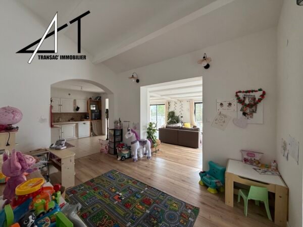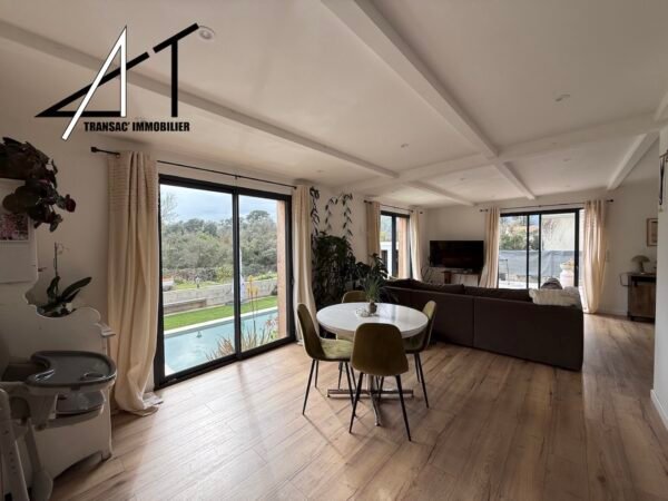 Idéalement située cette maison d’environ 150 m² vous offre de grands espaces lumineux et fonctionnels : un vaste séjour-salon donnant directement sur une terrasse idéale pour profiter des beaux jours, une cuisine équipée avec buanderie attenante pour plus de praticité, un bureau séparé, parfait pour le télétravail ou espace de lecture. Deux chambres parentales spacieuses, offrant confort et intimité, une troisième chambre agréable, idéale pour enfants ou invités et un WC séparé.