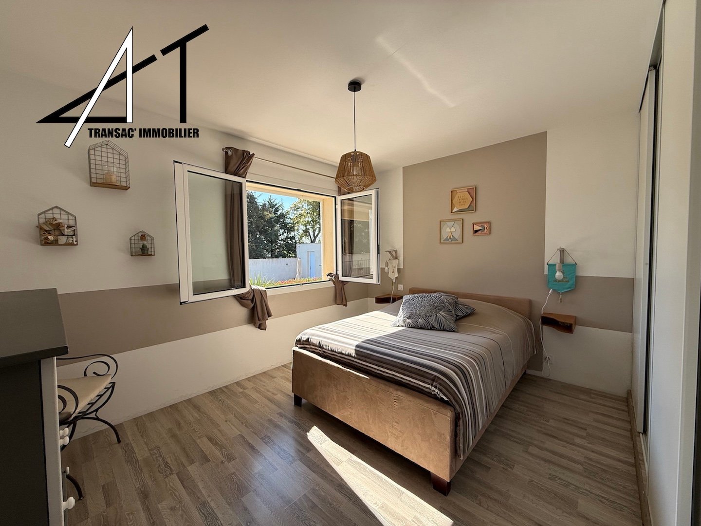 Elle est composée d’un agencement fonctionnel avec de beaux volumes : une grande pièce de vie, une cuisine équipée séparée (avec îlot central), une suite parentale avec dressing et salle d’eau privative , 2 autres chambres confortables, salle d’eau supplémentaire, wc indépendant.