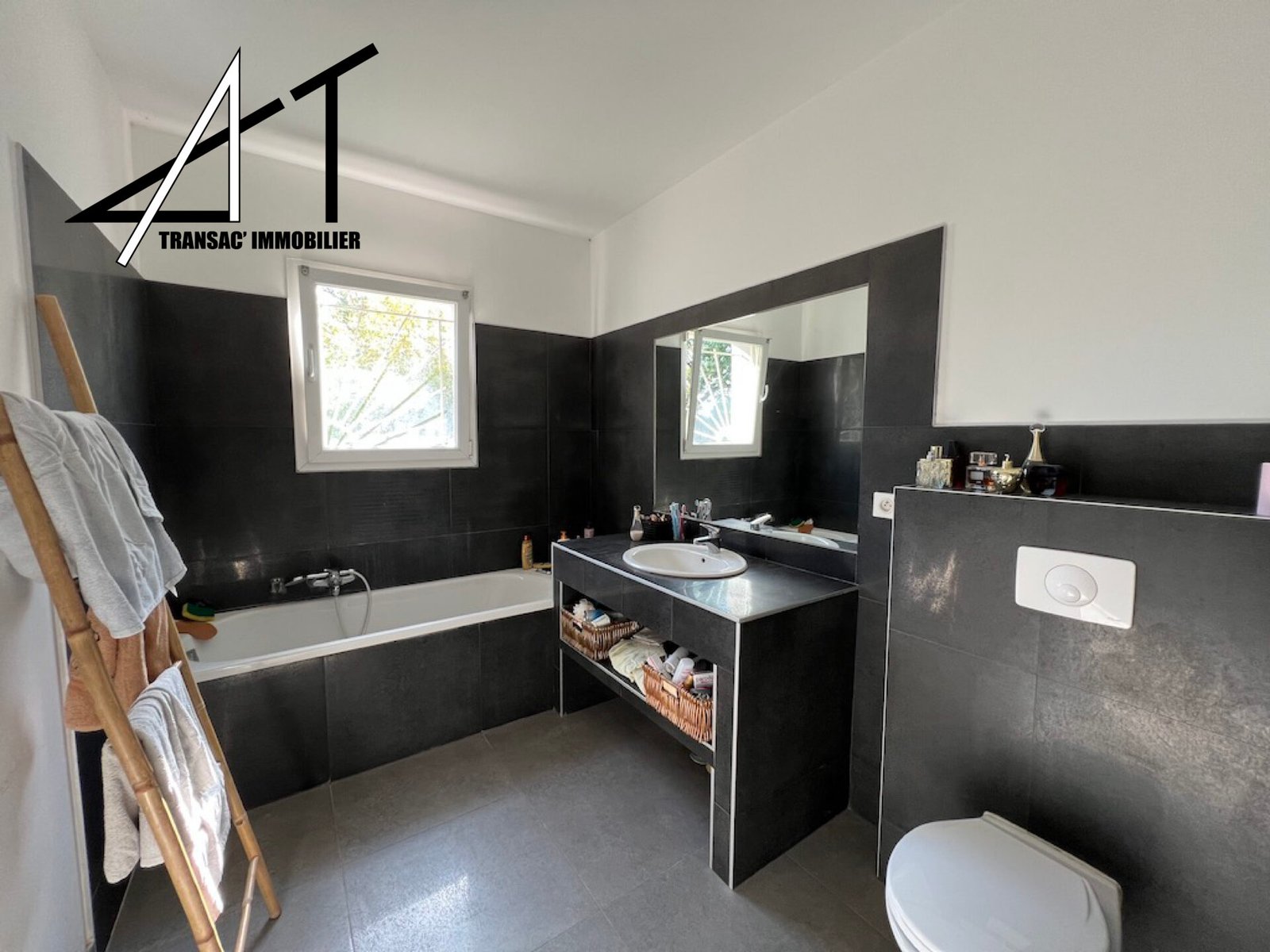 A l’étage: une grande chambre parentale de 26 m2 (avec placards, douche italienne, meuble vasque et wc).