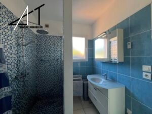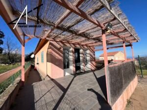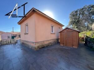 L’agence TRANSAC’IMMOBILIER vous propose au coeur du village de Sari, cette jolie petite maison de plain-pied composée d’un séjour-cuisine très lumineux avec une belle terrasse, un dégagement, une chambre donnant sur l’extérieur, une salle d’eau avec wc et un terrain attenant de 288 m2.