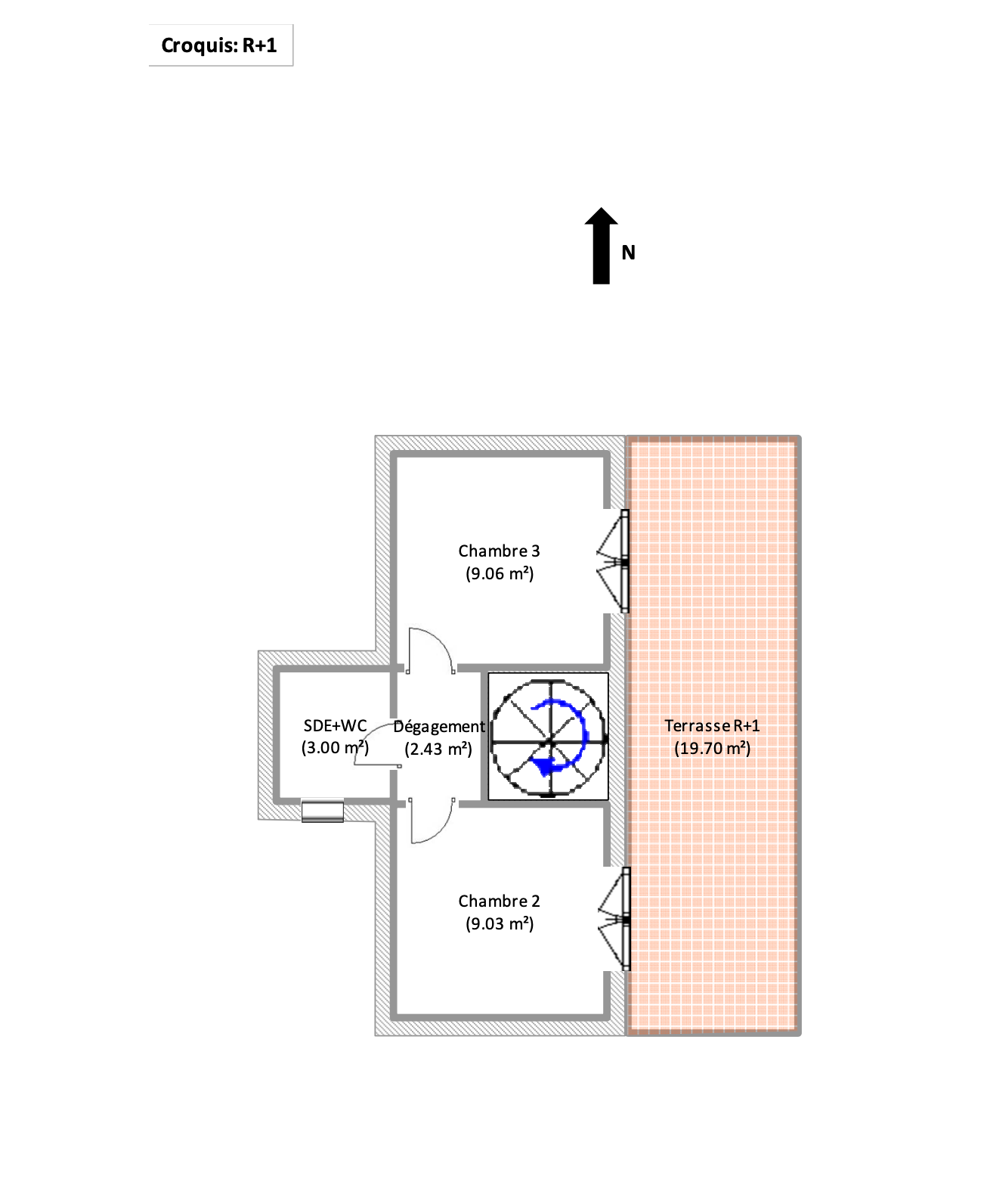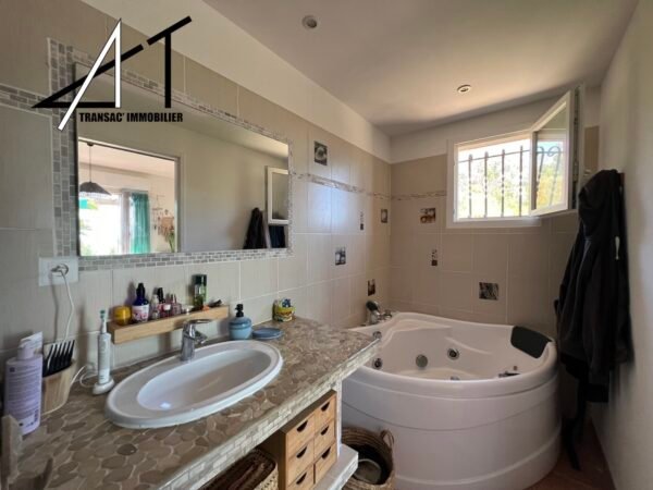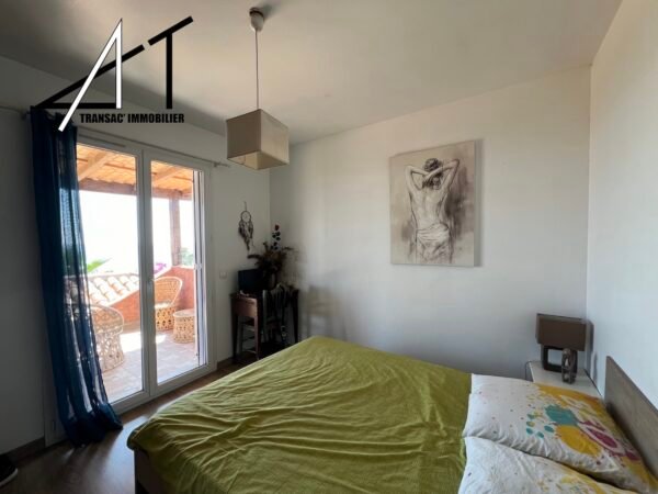 – A l’étage : hall, 1 chambre parentale avec salle d’eau et wc, 1 seconde chambre et grande terrasse couverte.
