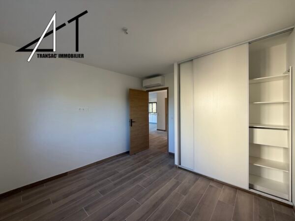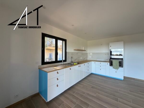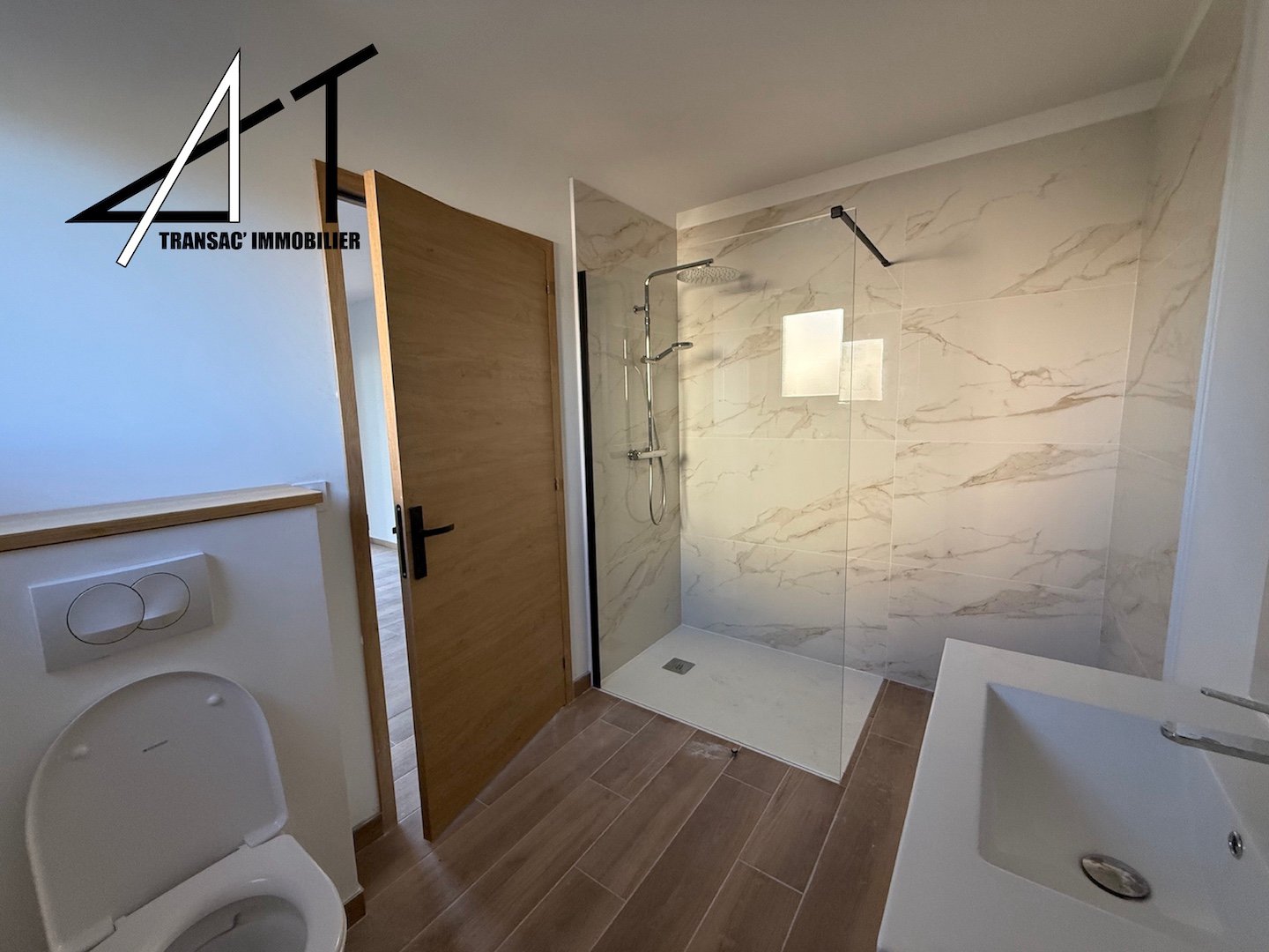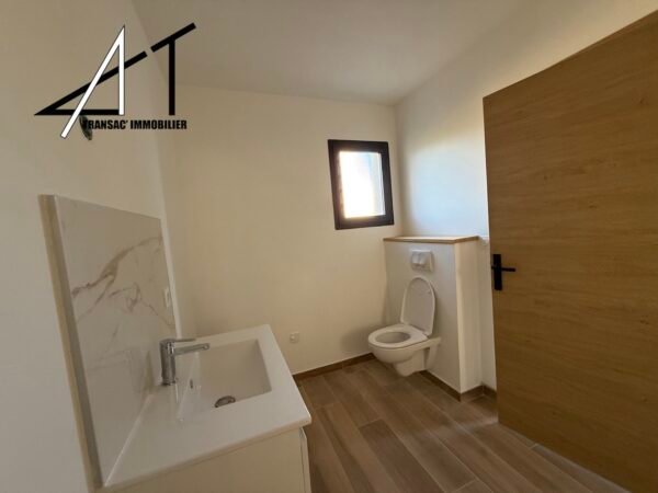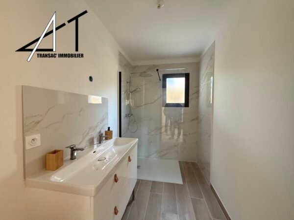 Jolie maison neuve de 96 m2 habitables composée de cuisine équipée, salon-séjour, une chambre parentale avec placard, sdb et wc, 2 chambres avec placard, salle d’eau avec wc, wc indépendant.