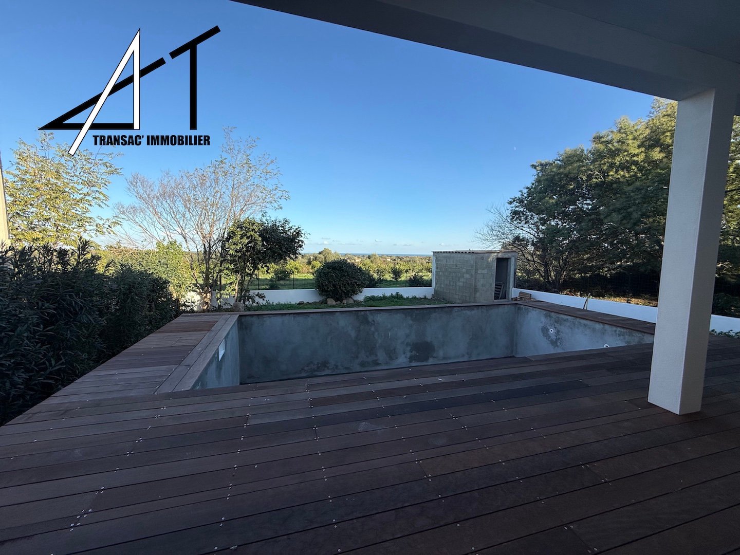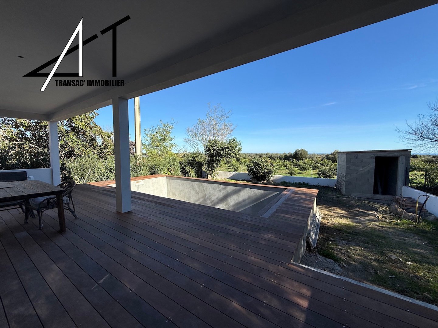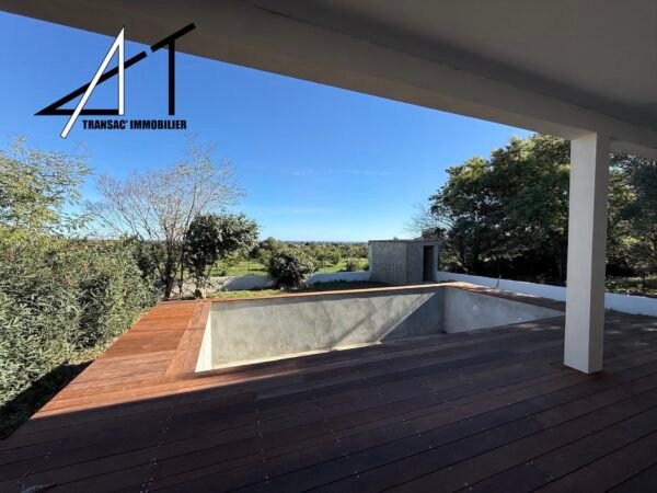 A l’extérieur : un garage de 20 m2, une terrasse, une piscine et un local technique. Le tout sur un terrain de 589 m2.